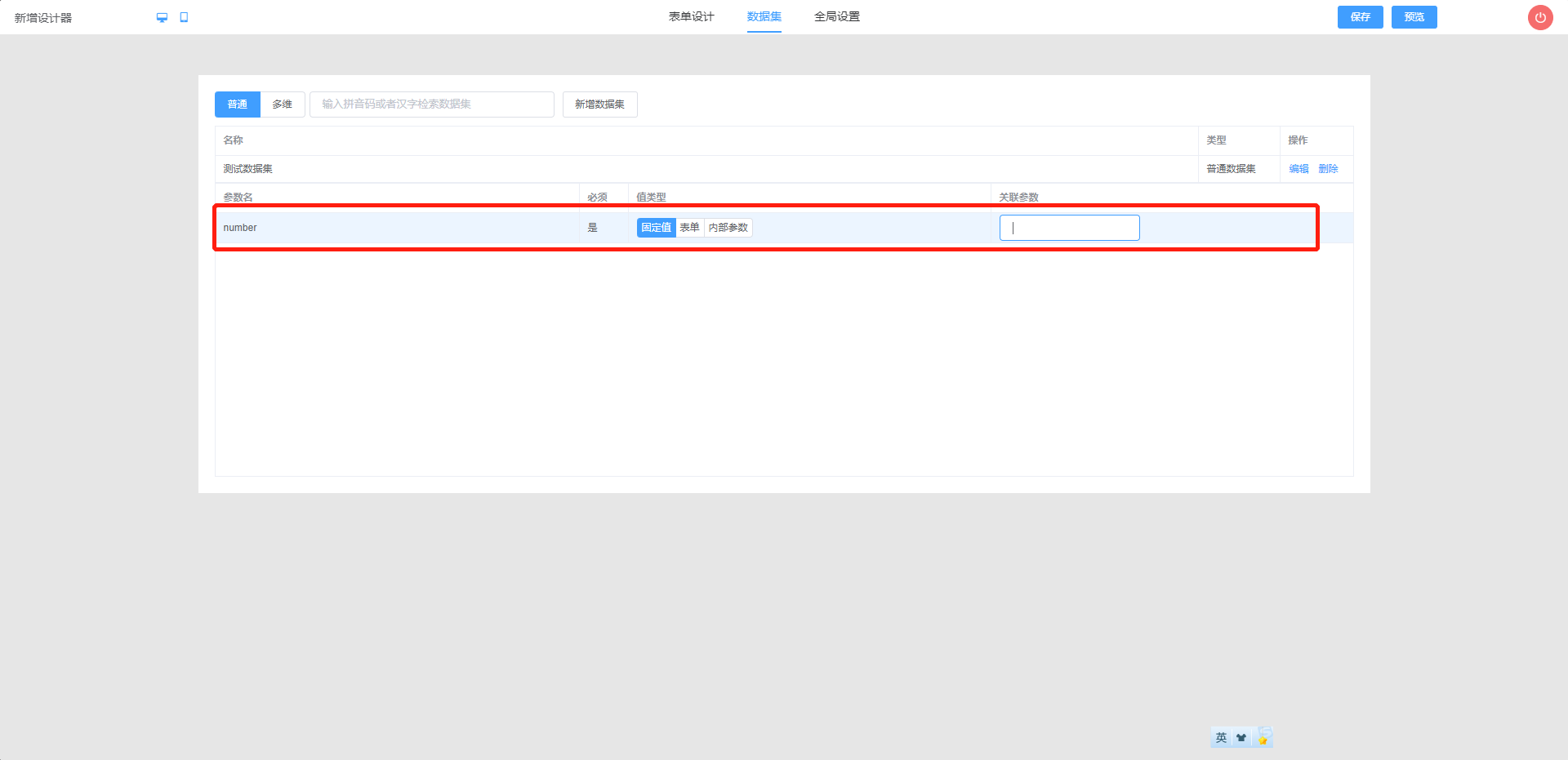 添加之后,在设计器选择数据集的时候可以看到此参数信息从而进行应用于报表